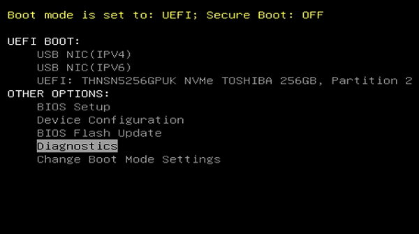 3. Use the arrow keys to select Diagnostics and press Enter key on the keyboard.
