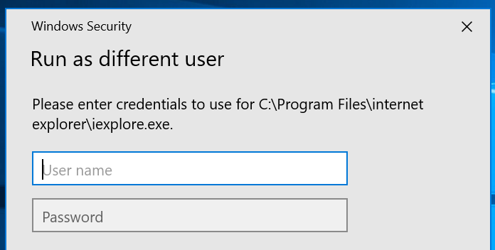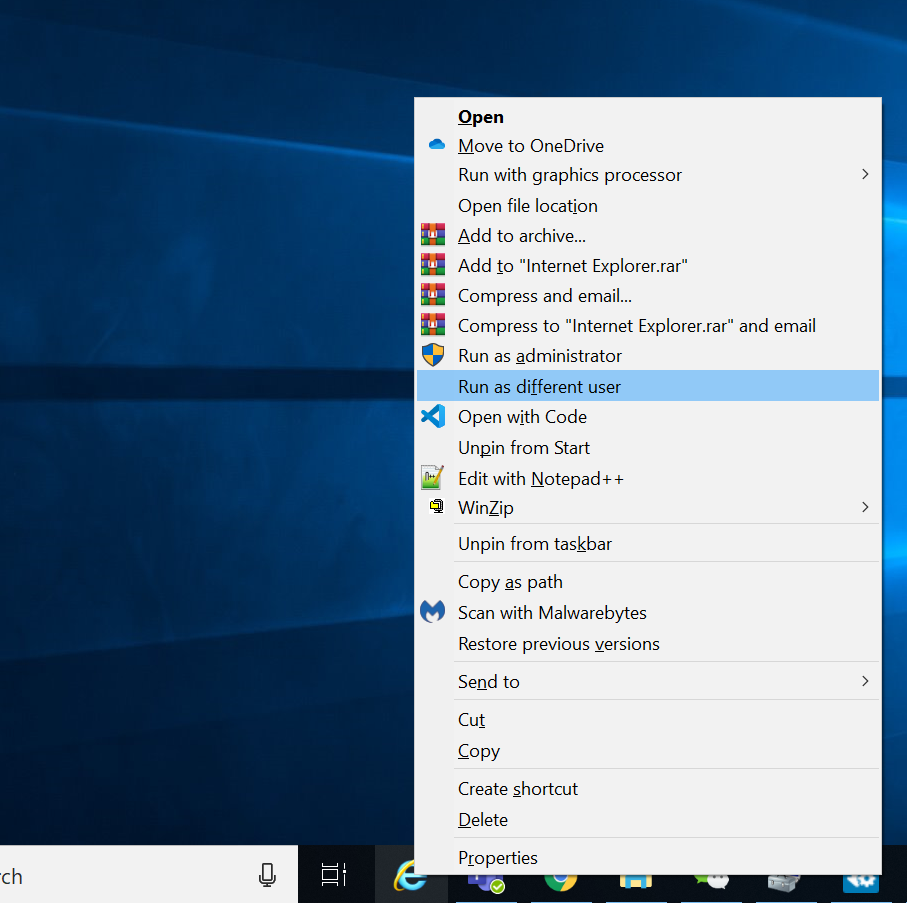1. Press and hold the "Shift" key + Right Click on IE icon
