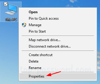 1. Right-click on the “This PC” ( or “My Computer”) icon on your desktop and then click Properties