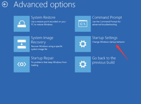 Click Restart. The computer restarts and another screen opens showing a lot of different startup options.